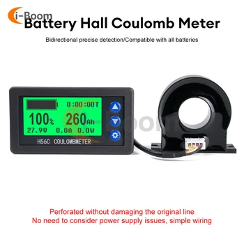 H56CH LCD Digital Hall Coulomb Meter Ammeter Voltmeter DC9-100V 50A 100A 300A 400A Voltage Current Power Meter Battery Indicator