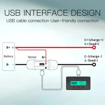 DC 9V-100V Battery Monitor Capacity Display Hall Sensor Coulomb Tester Voltmeter Ammeter Battery Capacity Coulomb Meter
